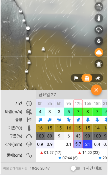 날씨 예보 및 물때 보기